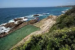 - 🌍 Blue Pool. Iconic natural rock pool at the base of the cliff on Scenic Drive. There are actually two of them, one shallow and sheltered from the waves, the other deeper with the odd wave crashing over. Spectacular views up and down the coastline including views to Montague Island. Bring snorkeling gear and spot the plentiful fish inside as well. Free to enter, and there's a shower/toilet block in the carpark, but parking is quite limited.