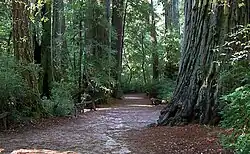 The Skyline to the Sea Trail begins at Castle Rock State Park, to the east of Big Basin. The second half of the 30 mi (48 km) trail passes through Big Basin, and runs all the way down to the Pacific Ocean at Waddell Beach. As of 2025, most of this famous trail is closed due to fire damage.