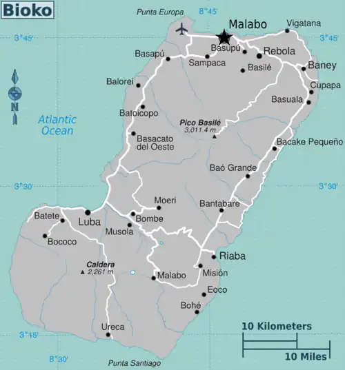 Bioko (formerly known as "Fernando Pó") is a large island in Equatorial Guinea, and location of the country's capital.
