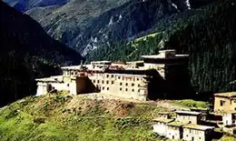 The Tibetan Colony: In 1966 the third Neten Chokling (1928–1973), an incarnate lama of the Nyingma lineage of Tibetan Buddhism, brought his family and a small entourage to Bir. With the help of foreign aid Neten Chokling purchased over 200 acres of land and established a Tibetan settlement where 300 Tibetan families were given land to build houses. At this time Chokling Rinpoche also started building a new Neten monastery in Bir, and disciples who had followed him into India formed its first sangha. When the third Chokling Rinpoche passed away in 1973, his eldest son, Orgyen Tobgyal Rinpoche (b 1951), assumed responsibility for completing his father’s vision. The fourth Neten Chokling incarnation was born in 1973 in Bhutan and brought to Bir at a young age where the family of the third Chokling took him under their wings. In 2004 full responsibility for Pema Ewam Chögar Gyurme Ling Monastery was passed to the fourth Neten Chokling. The monastery, now a place of study and practice for over 120 monks, served as the setting for Khyentse Norbu’s 1999 feature film The Cup.