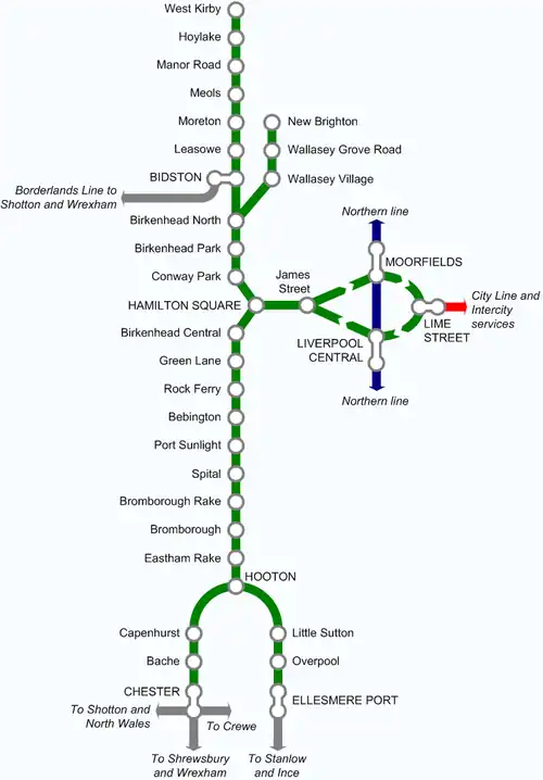 | Routes through Birkenhead |