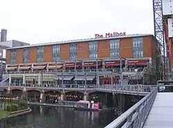 - Westside – extends southwest of New Street and beyond the former Inner Ringroad, and includes much of the remaining canals in central Birmingham. Alongside them, much new development took place, including civic buildings such as the International Convention Centre and Library of Birmingham, and multi-functional commercial projects such as Brindleyplace or The Mailbox