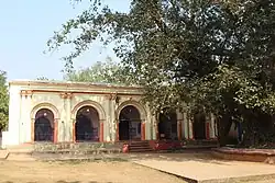 - 🌍 Radhamadhab Temple. A short distance away is the 1737 built Radhamadhav Temple. The ek – ratna temple is accompanied by a do – chala (double sloped roofed) structure. The temple is built by Churamony Devi, wife of Krishna Singh. The temple still contains some interesting stucco work featuring animals.