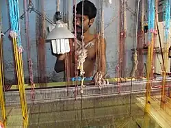 - Saris. Handloom saris are in great demand in Bishnupur. Baluchari Saris are famous Bishnupur products. Inspired by the terracotta panels of the temples the saris are woven with replicas of the terracotta panels depicting stories from epics, and historical and religious texts. Swarnachuri is another famous sari of Bishnupur. It follows the same design, but silk threads are replaced with gold threads. Today modern versions of both saris are available.