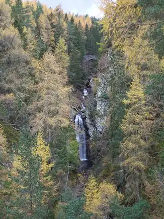 - 🌍 Falls of Bruar are at Pitagowan behind House of Bruar shopping centre. It's a spectacular series of pools, waterfalls and natural arch, as the Bruar Water cuts a gorge through the rugged landscape. Best viewed in full spate after heavy rain, and in autumn with the colours of the leaves. In the 18th century the poet Robert Burns was one of many visitors who found the setting barren, so he wrote a poem to the Duke of Atholl, as if from the river, begging for some trees to adorn it. The Duke set about planting the area and laid out the present path; William Wordsworth complained it was too neat.