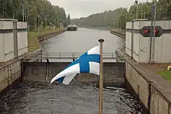 Via the 🌍 Saimaa Canal (Saimaan kanava, Saima kanal; 43 km) you can access the scenic Saimaa lake system. This requires briefly passing through Russia since the Gulf of Finland end of the locks is in Russia. See Vayla.fi for opening hours 2022 and links to instructions.