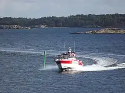 The main lanes for commercial shipping are of course well marked and sometimes the only option, but the busiest ones are best avoided when there are alternatives. Lesser fairways criss-cross through the archipelagos, used by pleasure craft as well as ferries and small freighters. There is a system of well marked main boating fairways, and also separate half-official boating routes (the depths of the latter are not guaranteed but trusted by most boaters). Cardinal marks in blue and white instead of black and yellow are used for some informal routes, mainly the last mile to a harbour. Leading lines are common, usually with lights. By kayak or canoe you should mostly avoid fairways; some paddlers use a pole with a bright flag to be easier to spot from fast motorboats, which are the main threat.