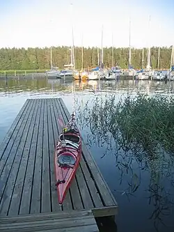 - 🌍 Kymijoki is the outlet river of Päijänne. Connecting Päijänne to the sea by Kymijoki was envisioned already in the early 1800s, but except for timber floating the project has never been realised. There are navigable sections, though. From Päijänne, the canal Kalkkisten kanava leads to Ruotsalainen with Heinola in the far end. On the other side of the centre is Konnivesi (connected by the rapids Jyrängönkoski), a 50-km² lake with 300 islands, one of which, Vasikkasaari is a recreation island. From there the 5.5 km Kimola Canal (opened for boat traffic in 2020: depth 1.8 m, height 4.8 m) bypasses 30 km of the river, with a few hydroelectric plants, and leads through a 70-m tunnel to Pyhäjärvi (one more by that name) by Jaala. 9 km after the canal, a boating route forks off, leading 17 km upstream the bypassed section, in Iitti. Hiidensaari at the fork has a guest jetty, recreation facilities, a nature reserve, a prehistoric hill fort, and archeologic findings. The boating route continues 14 km downstream. Don't continue down Tuhonvirta ("Flow of Doom") to Kuusankoski. You are now in Kouvola, the main guest marina is at Virtakivi, another marina in Hirvelä a bit to the east. Downstream the river is probably accessible by canoe, except where there are hydroelectric plants, and at some sections with trailerable boats. The last section of the Pyhtää fork has a manual lock, which allows boating up from the sea to the Pyhtää parish village.