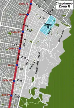 Chapinero is an affluent district in the north-east of Bogotá. It is home to the Zona G, an area of upscale restaurants.