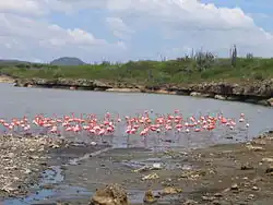 Bonaire is a Caribbean island just north of Venezuela, politically part of the Netherlands. Along with its neighboring Dutch islands of Aruba and Curaçao, it forms the ABC Islands, though it is much quieter. It is a mostly flat, riverless coral island renowned for diving, windsurfing, and bird watching (particularly flamingos). Lacking many sandy beaches – it instead has lush coral reefs – it is less visited by cruise ships. Bonaire has world-class shore diving, much of it easy, and is thus well-suited for beginners, or for experienced divers who want relaxing independent diving.