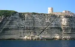 - 🌍 Escalier du Roi d'Aragon (Steps of the Aragon King). May-Sep: 09:00-20:00; Apr: 09:00-19:00; Oct: 10:00-17:00; Nov-Mar: 11:00-12:00, 14:00-15:00; last entry 30 min before closing. From the SW edge of the citadel, 187 steps lead down the cliffs (their diagonal notch is very visible from the sea) to the Cave of St Barthelemy's Well. This cave, which nowadays can't be entered, has a pool of fresh(-ish) water percolated down from the limestone above, so it was an important water supply for the city. A well was also drilled down directly from near the church of St Barthelemy on the headland. The steps are named for Alfonso V, King of Aragon, who was awarded control of Bonifacio in 1421 by the Genoans but the city held out against him. Fanciful legend has his men fighting up the stairs and being beaten back, but more likely he simply tried to block the water supply to force the city's surrender. He was unsuccessful and left. Reserve on line to get your ticket. Adult €5, child 6-11 €2; combined with Bastion de l'Étendard €6.50/€2.
