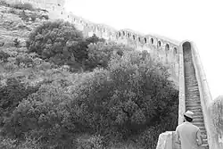 The saddle of the hill below the Citadel is called the Pass of St Roch. It's the starting point for several walks and has a small chapel. It commands a sweeping vista over the straits, and affords one of the best land-based views of the "Grain of Sand" or 🌍 Grain de Sable.