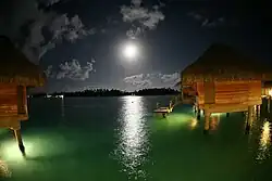 - 🌍 Le Meridien Bora Bora, ☏ +689 605151. Large hotel, billing itself as a 5-star resort. Very expensive, but there have been conflicting reports about the attitude of the staff. A popular destination for Japanese weddings, this hotel features a turtle sanctuary and a beach. The overwater bungalows are a novelty. It sits on a motu away from the main island, transport to the main island is via shuttle boat. Overwater bungalows feature glass floors which look into the water, however there is little "wildlife" in the water immediately surrounding the hotel.