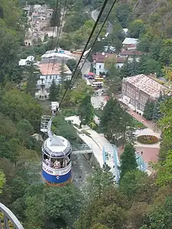 - 🌍 Borjomi Cable Car. Near the entrance of the central park there is an option to use cable car to get up to plateau, where there's a Ferris wheel. If you don't want to do it both ways, it will be cheaper to get a taxi back to the bottom than to get the return ticket. You might be able to see the winding house at the top, which is just above the ticket office. 15GEL each way.
