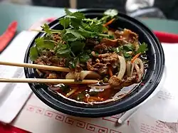 - π Gene's Chinese Flatbread Cafe, 86 Bedford St (T: Downtown Crossing), β +1 617 482-1888. M-F 11AM-6:30PM, Sa 11:30AM-7PM. Hole-in-the-wall Chinese restaurant with a few curated dishes specializing in hand-pulled noodles. The doughy noodles and spicy lamb soup base is best exemplified by option #16. Get your face close to the bowl and don't wear white! Potentially the best dollar to flavor ratio in the city. $6-12, cash only.