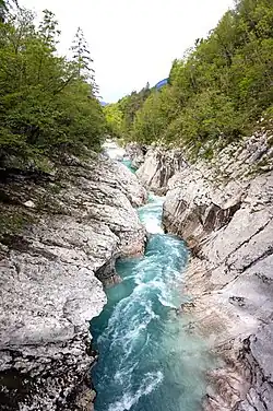 Bovec is a town of 1,600 people (2020) on the Soča river in northwestern Slovenia. The Soča river is famous for its white-water rafting and kayaking possibilities.