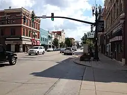 The downtown core of BG should be bypassed by cyclists who are passing through. Because of heavy traffic and low visibility around corners biking on the street is less easy here, and biking on the sidewalk is illegal downtown. For cyclists visiting downtown as a destination there are some anchored stands for bicycle parking.