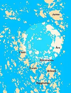 Brändö consists of the villages Lappo, Asterholma, Torsholma, Baggholma, Brändö by, Björnholma, Korsö, Fiskö, Åva and Jurmo. Most names of villages are also the name of their main island. Åva is the administrative centre but most of the services are in or close to the village Brändö.