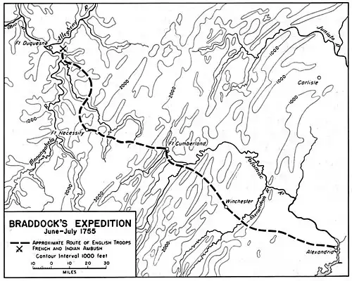 Once Halkett's group met up with Braddock's group, they headed for Cumberland through present-day West Virginia.