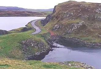 Brae (Old Norse BreiΓ°eiΓ°, "the wide isthmus") is on Mainland of the Shetland Islands. It was a tiny fishing village then grew rapidly in the 1970s with the construction of Sullom Voe oil terminal, and in 2011 the population was 856. In Scots and Old English a "brae" means a hill or slope, but Shetland was Norse so here it means "broad". A relative term: the isthmus here is almost a mile across, but to the west it's pinched to the 100-yard-wide Mavis Grind by which the Northmavine peninsula clings onto the Mainland.