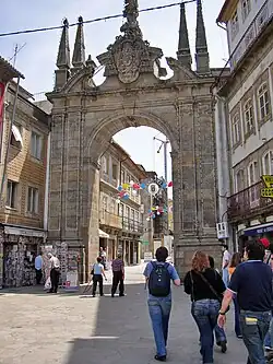 - 🌍 Arco da Porta Nova. An arch of triumph built in 1502 and reconstructed many times over until the 18th century. It proves less than monumental, being nestled between buildings, nevertheless providing for a beautiful photo setting with its rococo decorations. The figure atop the arch is the allegorical representation of the city of Braga, and the city has used the arch's image in many of its marketing and social campaigns.