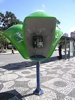 Public payphones use disposable prepaid cards, which come with 20, 40, 60 or 75 credits. The discount for buying cards with larger denominations is marginal. Phone booths are nearly everywhere, and all cards can be used in all booths, regardless of the owner phone company. Cards can be bought from many small shops, and almost all news agents sell them. The Farmácia Pague Menos sells them at official (phone company) price, somewhat cheaper. Calls to cell phones (even local) will use up your credits very quickly (nearly as expensive as international calls). Calling the USA costs about one real per minute. It's possible to find all international and Brazilian phone codes on DDI and DDD phone codes.