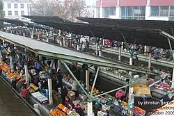There are many shops and boutiques on Sovetskaya street, which sell all kinds of products from fishing gear to real designer wear. Smaller shops are dotted around the town centre and there is a big "TSUM"- Central Department Store on Moskovskaya street. A big supermarket (Miks) with a wide range of food is on ul. 28 Iyulia, 8th trolleybus. Fresh food can be obtained on the "Kolkhos market" in the city centre (ul. Pushkinskaya/ul. Kujbysheva): inside the closed market meat (a bloody lot!), cheese, bread and stuff, outside (half-open) fruits and vegetables. In front of the markets elder women and other people sell what they grow on their datchas or collect in the forests.