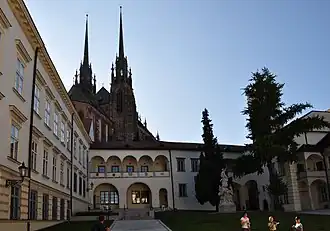 • 🌍 Petrov Cathedral, Petrov Street. Cathedral: 08:15–18:30; tower: May–Sep 12:00–18:30, Oct–Apr 12:00–17:00; crypt: Tu–Su 11:00–17:00. St. Peter and Paul Cathedral, known as Petrov forms a dominant silhouette of Brno skyline. (Petrov is the name of the hill which the cathedral is built upon, not the cathedral.) Pictured on 10 Kč coin. OSM directions target=_blank