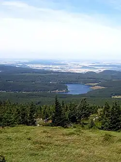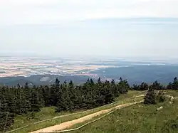 At good weather you can see all of Harz and far beyond it. In the southeast you can see the Kyffhäuser and by excellent weather conditions beyond it the Thuringian Forest (Thüringer Wald) mountain chain. In the west there are the Weserbergland heights including the Solling. In the southwest you can catch a glimpse of the mountains of Northern Hesse including the Hoher Meissner, Kaufunger Wald, Reinhardswald and Habichtwald. In the north and northwest you can see the cities of Brunswick and Magdeburg.