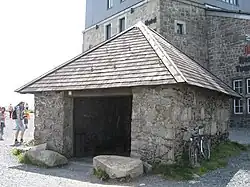 - 🌍 Wolkenhäuschen. The first building at the Brocken, the "little cloud house" is a rest hut built in 1736 and still standing. It's not used as a rest hut (instead head to the adjacent hotel) but more of a monument and dwarfed by the modern buildings around it.