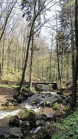 The path now gets rocky and steep but goes through a beautiful landscape along the Holtemme with views to the railway. Here the river is a mountain stream with many small waterfalls. If you prefer to walk along a forest road, take the Bielsteinchaussee east of the river, it too will take you to the guesthouse.