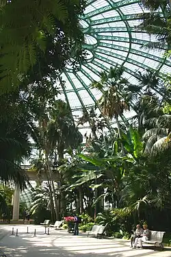 - π Royal Greenhouses (Koningklijke serres), Koninklijke Parklaan (Koninklijke Serres 53 ), β +32 2 279 22 11. The Roal Greenhouses are a vast complex of monumental heated greenhouses in the park of the Royal Castle, containting a variety of tropical, sub tropical and temperate plants and trees. The history of the greenhouses dates back to the 18th century, when king Leopold II changed the layout of the surrounding garden and commissioned architect Alphonse Balat to design a series of greenhouses. Starting in 1874, the construction of the greenhouses took over 20 years and was finalized in 1895 with the erection of the Iron Church, a domed greenhouse which would serve as the royal chapel. The largest greenhouse, the dome-shaped Winter Garden, has a diameter of 60 m and a height of 30 m, designed in an art nouveau style with iron and glass as construction materials. With a floor surface of 25 000 mΒ², the numerous greenhouses are connected with glass covered galleries and locks to retain temperature differences appropriate for the vegetation. Over 800 mΒ³ of oil is burned each year to maintain the temperature. The botanical collection includes numerous species from Africa, although many cultivars have been lost since the death of king Leopold II. The camellias collection in particular, with over 1000 plants, is the world's oldest and largest collection in a greenhouse. The complex can only be visited by the public during a two-week period in April-May when most flowers are in full bloom, as dictated by Leopold II and followed as a tradition by all kings thereafter. Free.