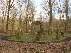 - π Foresters Monument (Monument voor de Boswachters), Grasdellepad. 24/7. A monument consisting of 11 menhirs, dedicated to the foresters who gave their lives protecting the Sonian Forest during the First World War. The monument was designed by Richard Viandier who drew inspiration from Celtic funeral rituals. The stones are massive blocks of pudding stone, a natural mix of sand, quartz, silex, and cobblestones. They were excavated and shaped in a quarry at WΓ©ris in the Belgian province Luxemburg. Inscribed on the smaller menhirs are the names of the 11 foresters, and their village of origin. The central menhir carries the inscription "Aux forestiers morts pour la patrie 1914-1918" ("To the foresters killed for the fatherland 1914-1918"). Free.