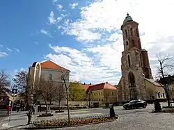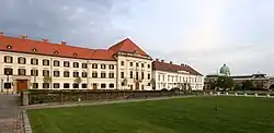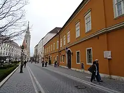 - 🌍 Carmelite Monastery, Castle Theatre (Karmelita kolostor, Várszínház), I, Színház utca 1 (Dísz tér 16 ). Only from outside. The Baroque monastery was built in 1736 by the Carmelite order on the former site of a mosque that was destroyed in 1686 during the siege that liberated Buda from Ottoman occupation. The order received the real estate in 1693 and completed the new monastery and church by 1736, but it was consecrated only in 1763. Two decades later, Emperor Joseph II disbanded the order and converted the property into a theatre by imperial order in 1786, "for the delectation of high-ranking court officials". Some notable performances included Beethoven and the premiere of Bánk Bán. It is the current seat of the Prime Minister of Hungary.