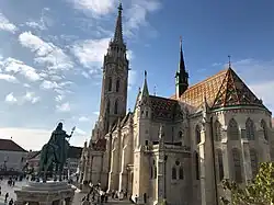 - 🌍 Matthias Church (Church of the Assumption, Mátyás-templom, Nagyboldogasszony-templom), I, Szentháromság tér 2 (Szentháromság tér 16 ), turizmus@matyas-templom.hu. M–F 09:00–17:00, Sa 09:00–12:00, Su 13:00–17:00. According to church tradition, it was originally built in Romanesque style in 1015, although few references exist. The current building was constructed in the florid late Gothic style in the second half of the 14th century and was extensively restored in the late 19th century. It was the second largest church of medieval Buda. The rococo spire of this church is one of the easily seen landmarks of the Buda Castle. Church for adult: 2000 Ft; for senior, student: 1500 Ft. Tower for adult: 2200 Ft; for senior, student: 1700 Ft.