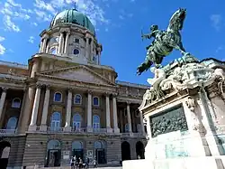 - 🌍 Equestrian Statue of Prince Eugene of Savoy (Savoyai Jenő herceg lovasszobra), I, Savoy Terrace (Dísz tér 16 ). The Neo-Baroque statue was made by sculptor József Róna for the town of Zenta, but the town could not afford the price. The monument was bought in 1900 as a temporary solution until the planned equestrian statue of King Franz Joseph was completed. This never happened, so Prince Eugene remained on his plinth. The plinth is decorated with two bronze reliefs showing the capture of the earth-works in Zenta and the decisive cavalry charge in the Battle of Zenta in 1697.