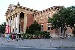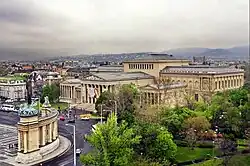 - 🌍 Hall of Art (Műcsarnok), XIV, Dózsa György út 37 (Hősök tere M1 ), ☏ +36 1 460-7000, mucsarnok@mucsarnok.hu. Tu W F–Su 10:00–17:45, Th 12:00–19:45. The large Neoclassical style structure, designed by architects Albert Schickedanz and Fülöp Herczog, was built in 1896 for millennium celebrations. The art gallery hosts temporary exhibits contemporary art by Hungarian and international artists. Adult: 2200 Ft; senior, student: 1100 Ft.
