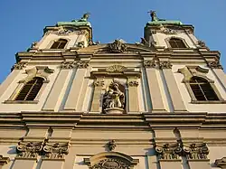 - 🌍 Monastery and Church of the Nuns of Elizabeth (Erzsébet-apácák kolostora és temploma), I, Fő utca 41-43 (Batthyány tér M2 ), ☏ +36 1 213-7508, gemeinde@elisabeth.hu. In the Turkish period stood on the site of this church, a mosque with a dervish monastery. After the liberation of Buda (1686), for the Bosnian Franciscans were building this, in thanks to their pastoral work during the Turkish occupation. The monastery was gradually expanded with seminar, theological college and extended with a rich library. The present Baroque church began Jakab Hans in 1731 to build, and the tower was not built until 1739–1741. The facade sculptures date from the Franciscans times. In the central niche is the Immaculata statue, right and left the statues of St. Francis and of St. Anthony can be seen. At the gate, the Franciscan coat of arms can be seen. Interior: At the entrance, on the right column of the holy water basin indicates a blackboard to the level of the flood of 1838. The ground plan of the nave Baroque church is rectangular. The frescoes of the apse have been painted by Károly Ferenc Innocent and Beder in 1890. The high altarpiece, the stigmata of St. Francis is, right and left are the statues of Peter and Paul; angels hold the attributes of the martyrdom of the two apostles. In the church there are eight side altars.