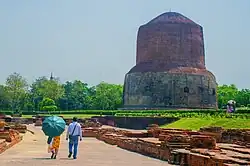 - π Sarnath. Sarnath is a small village in Uttar Pradesh, India, about 13 km north-east of Varanasi. It's famous as the site of the deer park where Gautama Buddha first taught the Dharma and also where the original Sangha was formed. Within the deer park complex is the large Dhamekha Stupa, constructed by the Emperor Ashoka in 249 BCE, and several other Buddhist structures that were added between the 3rd century BCE and the 11th century CE.