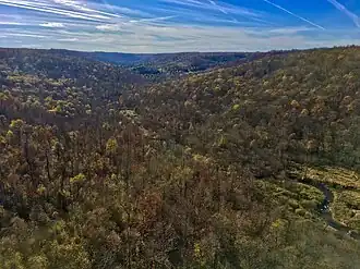 - About five miles (8 km) past Bradford along Route 219, you enter the vast 🌍 Allegheny National Forest, and you'll continue skirting its eastern boundary for the next 13 miles (20 km) or so. Functioning in many respects as a southern extension of Allegany State Park in New York, these 802 square miles (2,077 km²) are nowadays carpeted thickly with hardwood trees such as black cherry, black birch, and red and sugar maple, but to motorists on the original Buffalo-Pittsburgh Highway they would have looked totally different. The original old-growth forests had been clear-cut over the second half of the 19th century as the lumbering, tanning (which used hemlock bark), and wood chemical industries made their mark on the local economy, and by the 1920s the landscape was one of denuded hills from horizon to horizon. The National Forest Service took over the land in 1923, but many doubted the forest would ever recover — the local nickname in those early days was the "Allegheny Brush Patch". But thanks in part to the dramatic decrease in the local deer population (victims of overhunting), that's exactly what happened as the 20th century wore on. Today, like the state park to its north, Allegheny is a great stop-off for those travellers who've got time on their hands: the full complement of outdoor pursuits it offers includes mountain biking (check out the exhilarating trails in and around Jake's Rocks, suitable for all skill levels), world-class fishing (pike, walleye, and muskie abound in these pristine mountain streams), hiking, horseback riding, and ATV riding (innumerable miles of trails crisscross the wilderness) in the warmer months, while in winter those same trails accommodate cross-country skiers, snowmobilers, and snowshoers. And if you're in search of a camping experience a touch more rustic and secluded than those you've yet encountered, you'll find an embarrassment of riches here, especially on the shores of the reservoir.