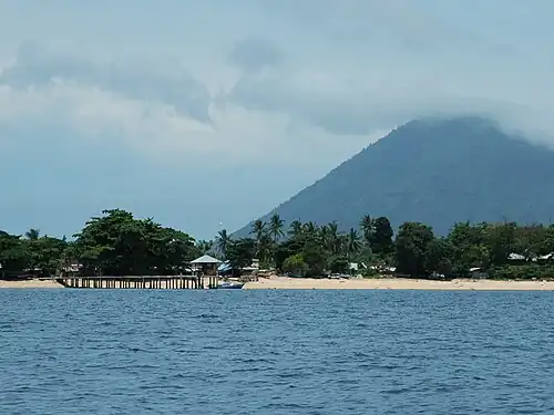 Bunaken is close to a big city, making it easy to visit. In addition to banana-shaped Bunaken Island itself, the 890 km² of marine national park includes the neighboring islands of Manado Tua (a distinctive cone-shaped extinct volcano), Siladen, Mantehage, Nain, and Nain Kecil.