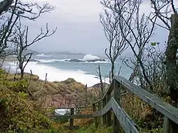 Burgeo is the southernmost point on Route 480, which leads north to Barachois Pond Provincial Park, east of St. Georges on the Trans-Canada Highway. Route 480 ends at the local ferry dock; a pair of coastal ferries continue onward to Ramea, Grey River and Francois.