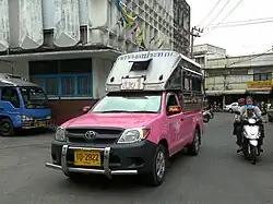 The Buriram Songthaew System (BSS) provides public transportation for the city. There are two lines: Line 1 (Buriram Municipality Market-Khao Kradong Forest Park Line), and Line 2 (Ban Bua Line). Both lines are colored pink.