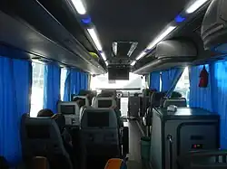 - Luxury - 2-1 layout with 26 fully reclining seats, which can be turned to beds on overnight trips and an onboard toilet. Stops only at major cities (or run non-stop, not including food and toilet breaks). Mostly operated by the large bus companies.