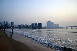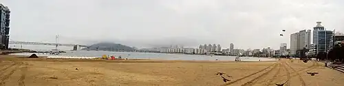 - π Gwangalli Beach. Best experienced at night when the impressive Gwangan Grand Bridge is illuminated. The area is similar to Haeundae but smaller and less upscale. There are plenty of local restaurants, bars and shops in the area. In summer the crowds are slightly less than in Haeundae Beach. This is also the premier location for new year's ever firework/drone shows.
