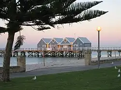 Busselton is a city of 28,000 people (2018) on Geographe Bay in the South West region of Western Australia. It is famous for its 2-km-long heritage jetty, which has been restored for tourism, and is also famous for its beaches and fishing. Busselton was voted Western Australia's top tourist town in 1995, 1996, and 2005. It is visited by cruise ships 8-12+ times a year.
