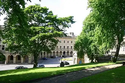 - π Buxton Crescent. Built for the Fifth Duke of Devonshire between 1780 and 1789. Also in the area:St Anne's Well; The Slope and Pump Room; Natural Mineral Baths; and Buxton Thermal Baths, restored as the Cavendish Arcade.