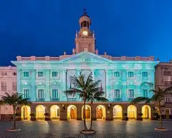 Construction of this plaza began in the 15th century on lands reclaimed from the sea. With the demolition of the city walls in 1906 the plaza increased in size and a statue of the Cádiz politician Segismundo Moret was unveiled. Overlooking the plaza, the Ayuntamiento is the town hall of Cádiz's Old City.