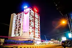 - 🌍 Limketkai Luxe Hotel, Limketkai Avenue, Limketkai Center, ☏ +63 88 880 0000, info@limketkailuxe.com. Check-in: 2PM, check-out: noon. One of the tallest and most-recognizable buildings in Cagayan de Oro with its golden facade, the Limketkai Luxe Hotel is at the northern end of the Limketkai Center complex. At the hotel's ground floor is the KaVe Restaurant and Bar, while an outdoor pool, sauna and fitness center are also available. All guests have free breakfast, along with free WiFi that can be accessed anywhere (although wired high-speed internet is ₱100/hour).