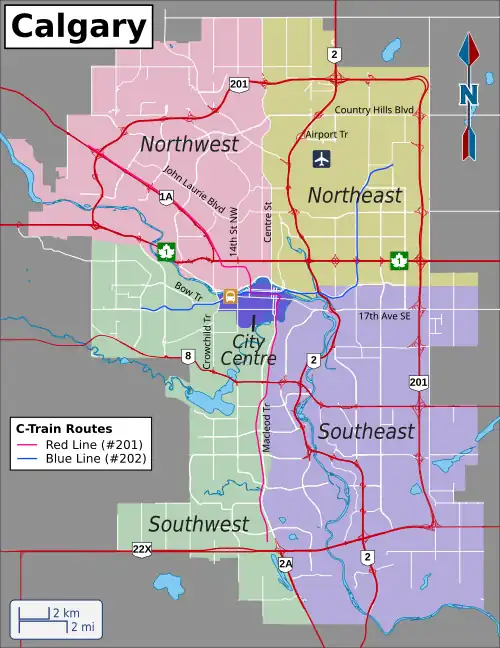 Accommodations are mainly located in the City Centre, Motel Village in the Northwest near 16 Avenue NW and Crowchild Trail, and in the Northeast near the Calgary International Airport and along Barlow Trail. There are hostels located in the City Centre.